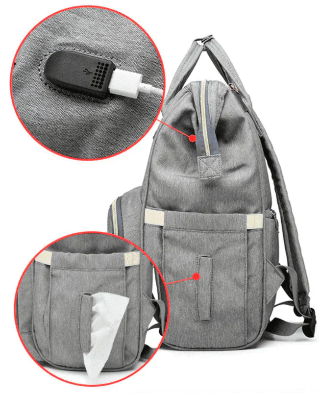 A Bolsa Mochila Maternidade LeQueen USB é o acessório perfeito para as mamães modernas e práticas, é espaçosa o suficiente para armazenar tudo o que você precisa para o seu bebê durante passeios e viagens.