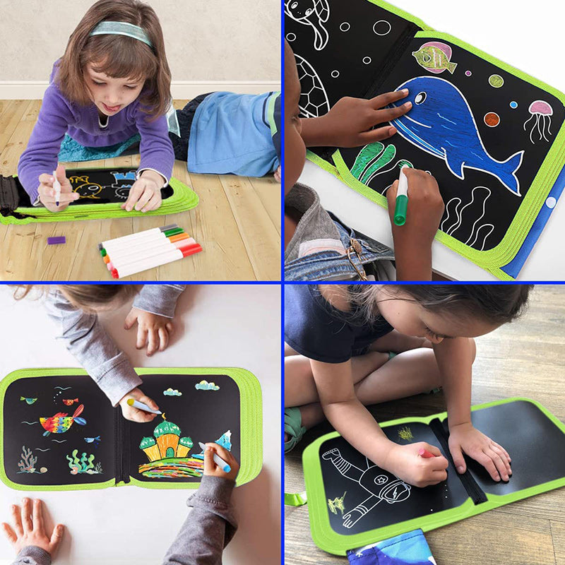 - Opção 3: 1x Caderno de Desenho Apagável - Desenhe sem Limite - Livro Verde 10 Páginas + 6 Canetas