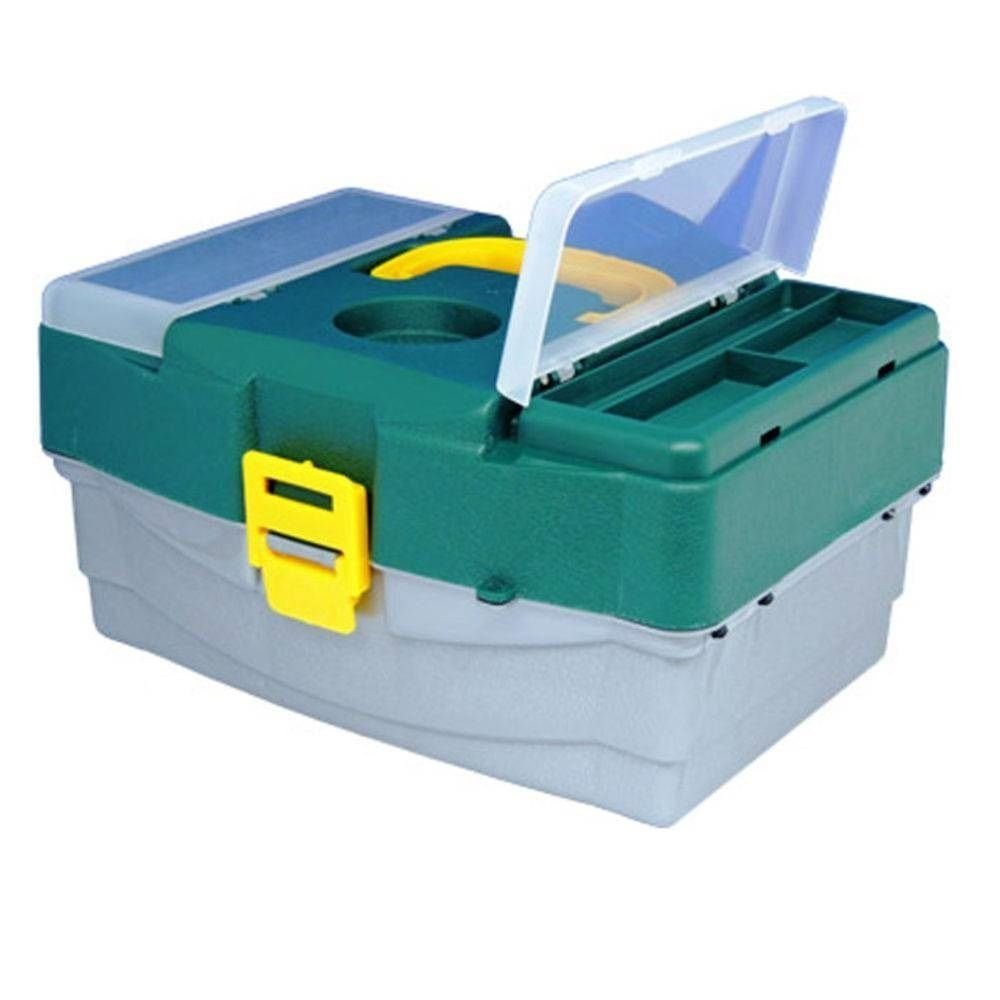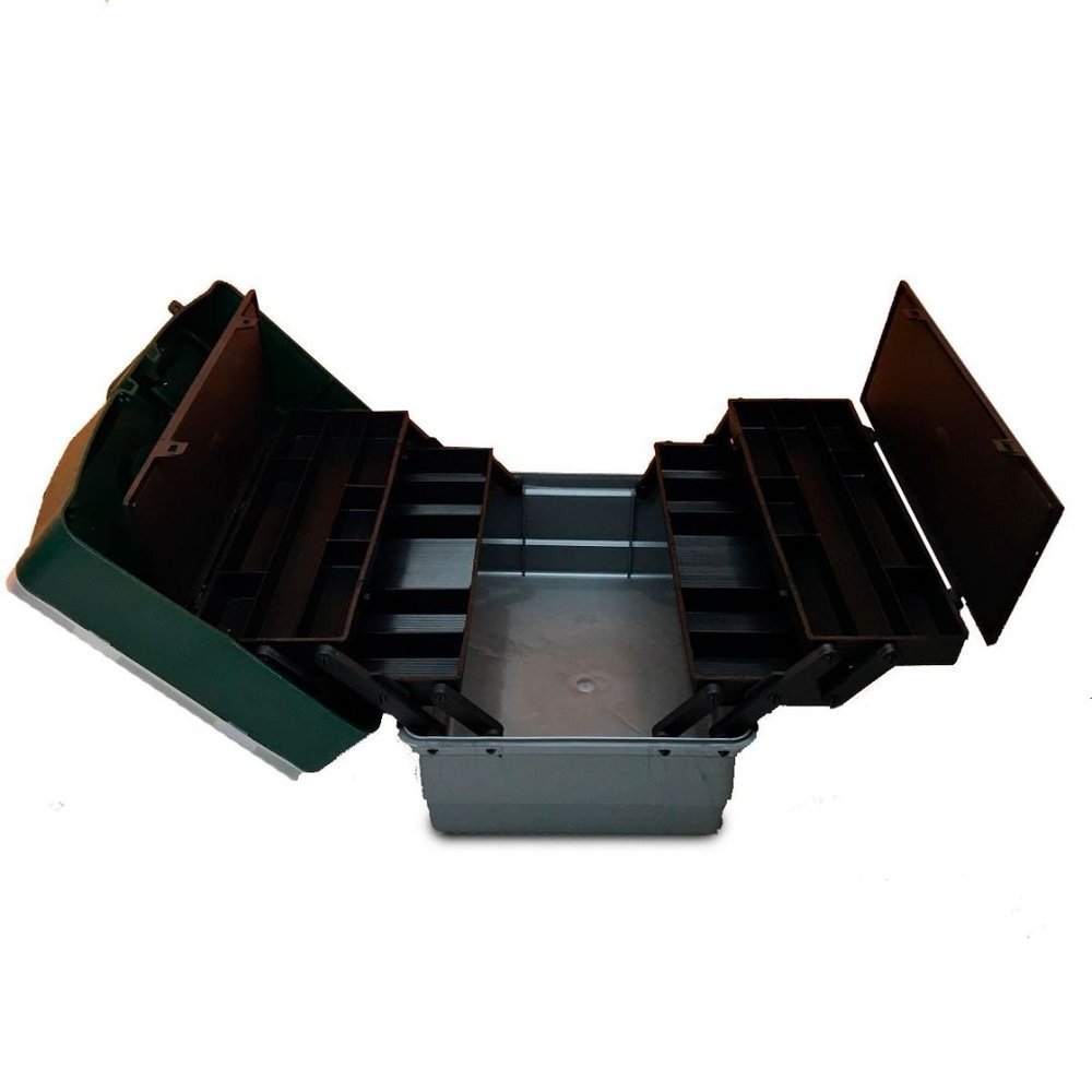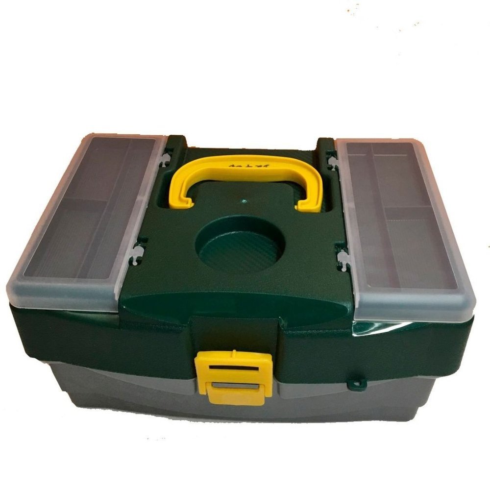 Caixa com 04 bandejas moveis com tampa na bandeja.