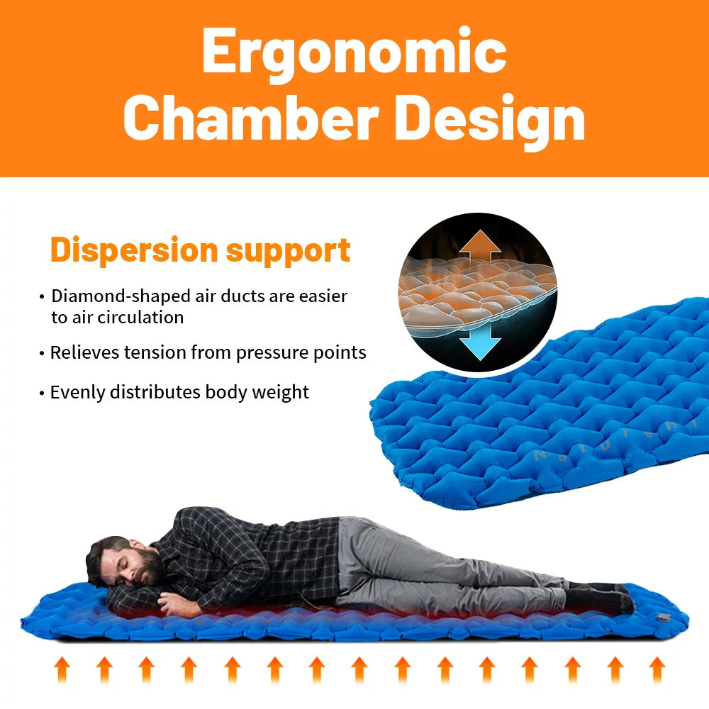 Descubra o conforto e a praticidade do Colchão Inflável Naturehike, o complemento ideal para suas aventuras ao ar livre. Projetado para oferecer uma noite de sono tranquila em qualquer ambiente de camping, este colchão é feito com material PVC durável e é fácil de inflar com uma bomba externa.
