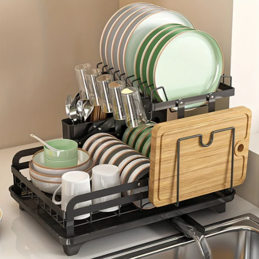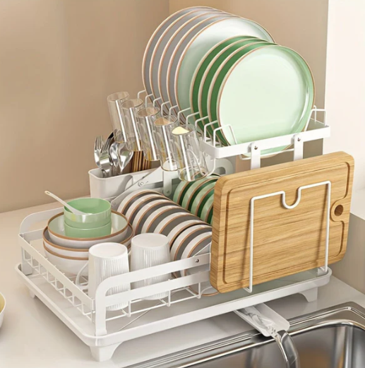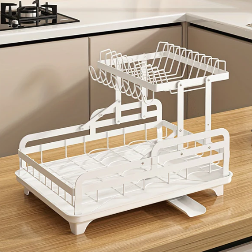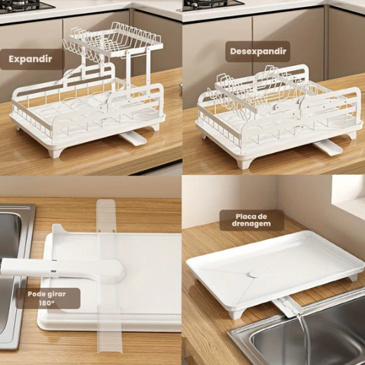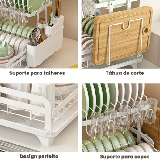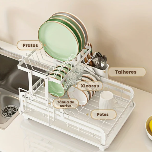 Escorredor de Louça 2 Níveis Em Aço Inoxidável com Drenagem