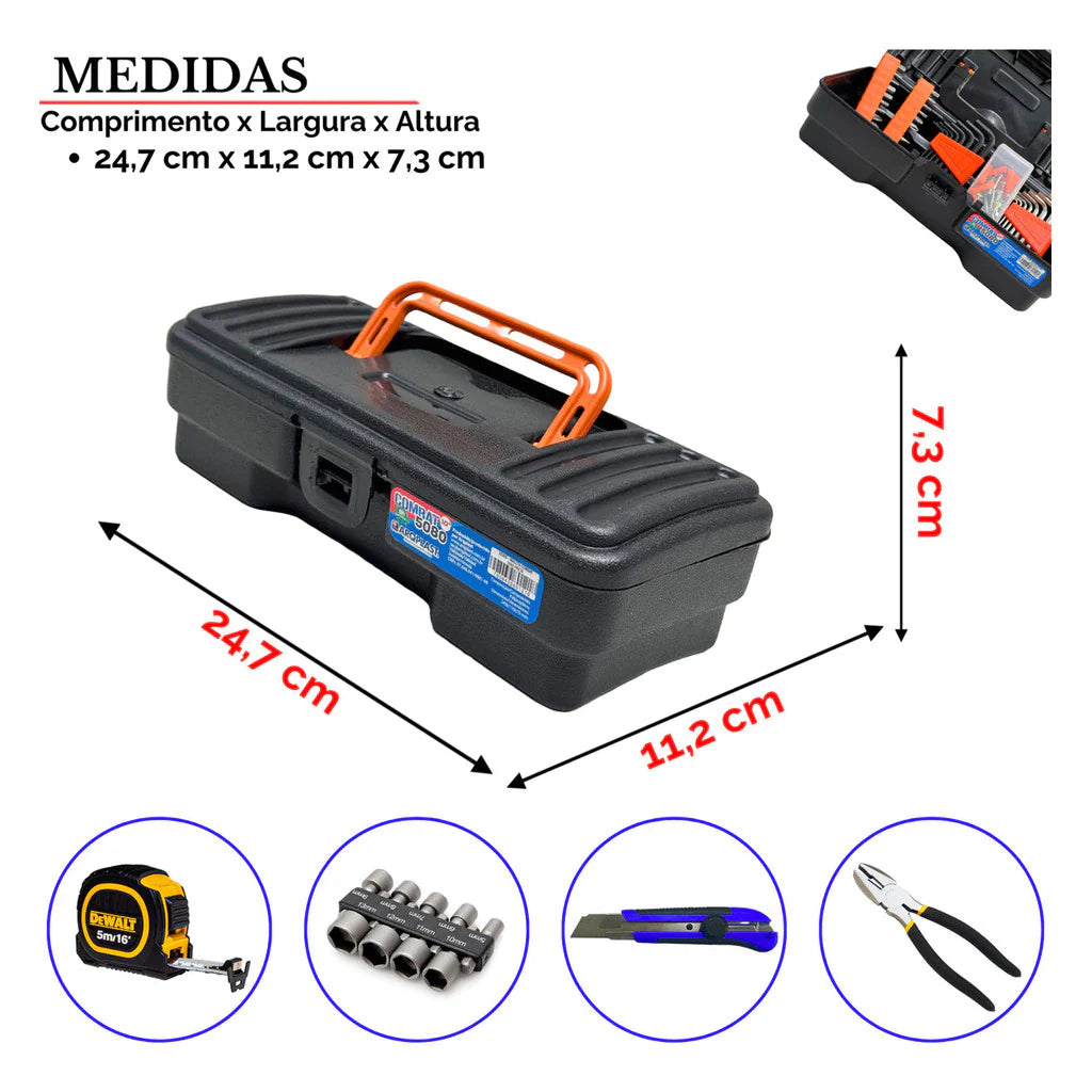 Se você se enrola toda vez que precisa achar uma ferramenta, esse kit é pra você. São 6 maletas brutas, pra organizar tuas chaves, alicates, parafusos e tudo que faz parte do teu trampo. Esquece gaveta bagunçada: aqui é cada coisa no seu quadrado, pronto pra uso.