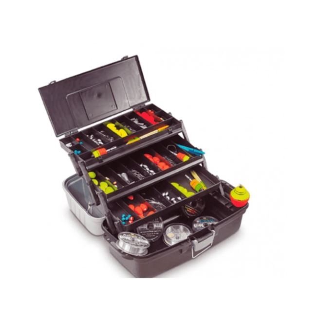 Ideal para guardar e organizar todos os seus acessórios para pesca Alça na parte superior Possui 3 bandejas internas com divisórias especificação
