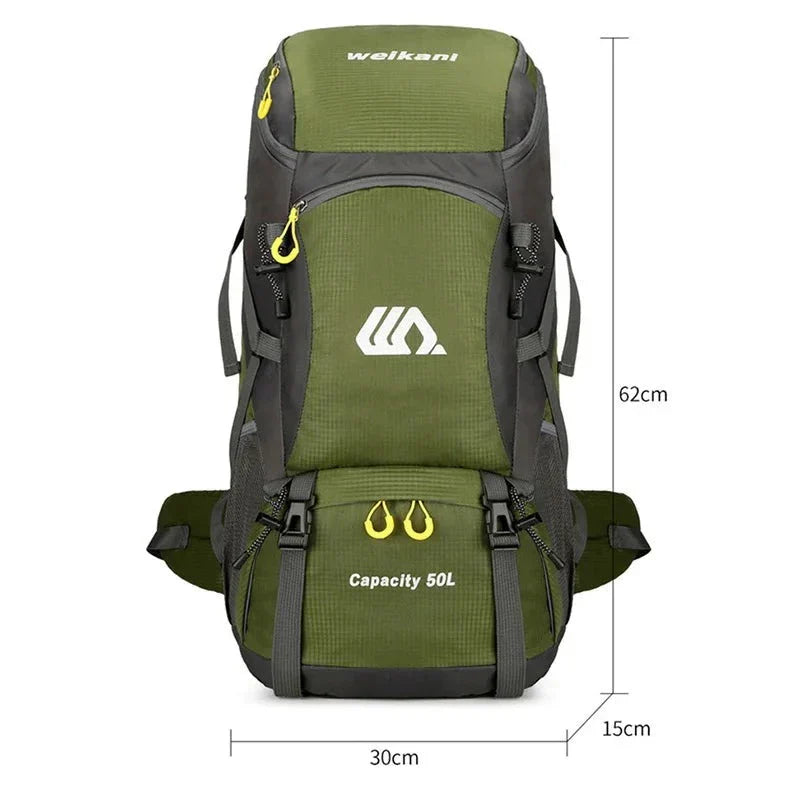 - Capacidade de 50 Litros: Com amplo espaço interno, a Mochila de Alpinismo 50L permite organizar e transportar todo o equipamento necessário para suas aventuras, desde roupas até equipamentos técnicos.