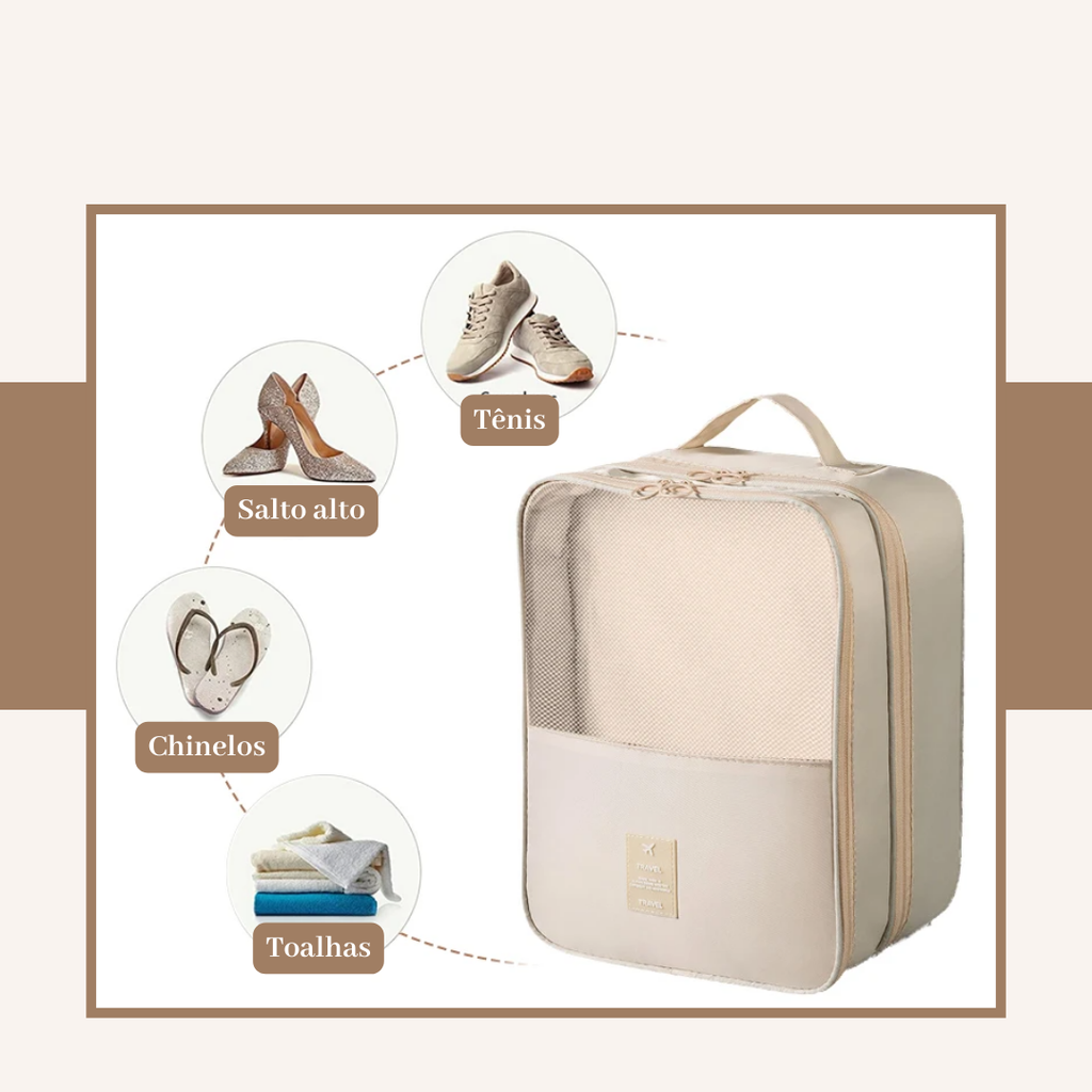 - Organização Impecável: Mantenha seus calçados perfeitamente organizados na mala, economizando espaço e evitando bagunça.