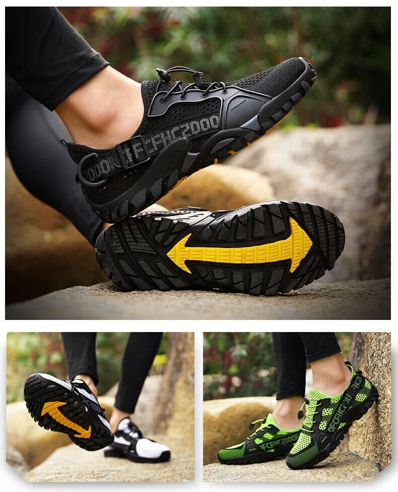 - Design de Secagem Rápida e Impermeável: Mantenha seus pés secos com nossos materiais de malha impermeáveis. Os orifícios de drenagem permitem que a água seja expelida a cada passo, ideal para atravessar rios ou riachos.