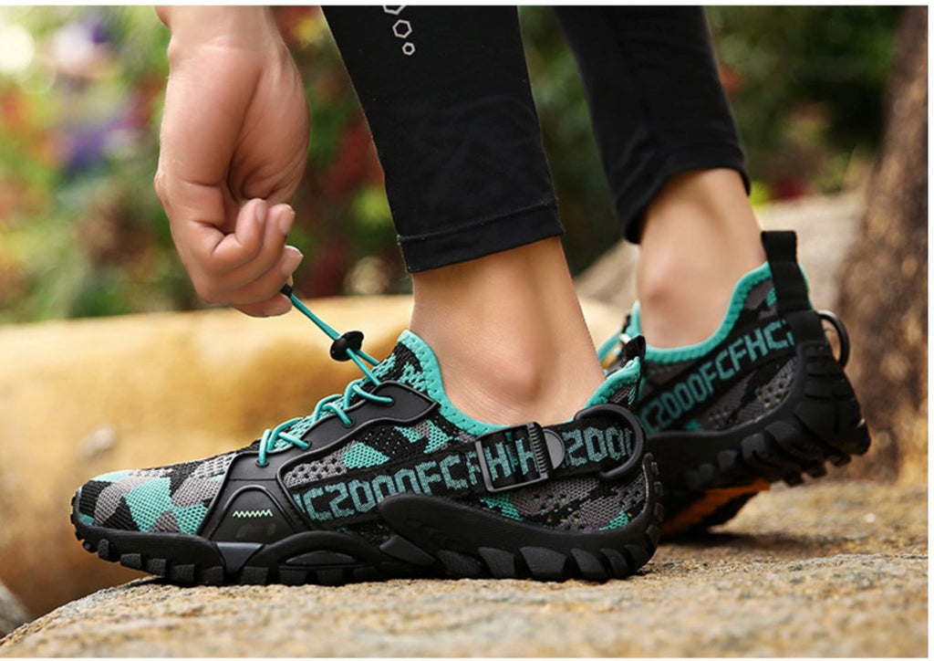 - Amarração Rápida e Fácil: Com atacadores de amarração instantânea, você pode ajustar seus sapatos em segundos, sem perder tempo amarrando cadarços, garantindo mais agilidade e praticidade nas trilhas.